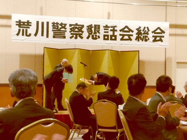 感謝状の授与は荒川警察署懇話会で行われました。とても盛大な会で緊張しましたが、地域貢献が認められて嬉しく思います。