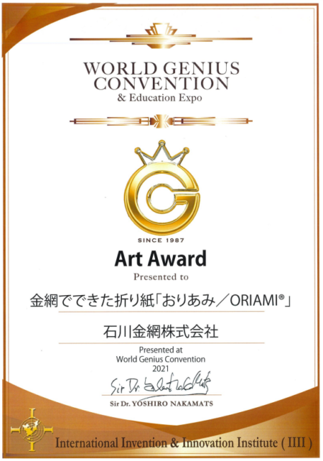 審査の結果、なんと、おりあみが「Art Award」を受賞しました!
