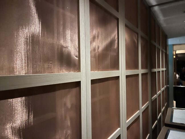 今回、ウェスティン都ホテル京都の3FにあるDominique Bouchet Kyoto「Le RESTAURANT」の内装材として金網折り紙「おりあみ/ORIAMI®」が採用されました。
