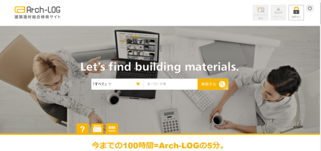 Arch-LOGは「今までの100時間=Arch-LOGの5分」がコンセプト。建築建材カタログは日々進化していますが、多くのメーカーが存在しており、個々の商品に関しての異なる表現や角度の違う説明により、ユーザーである設計者、施工者に混乱をきたしていました。