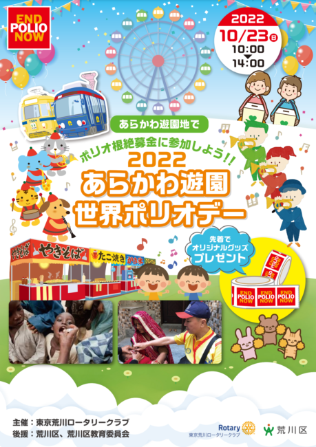 10月23日(日)10:00~14:00に東京荒川ロータリークラブ主催の「2022あらかわ遊園世界ポリオデー」が開催されます。