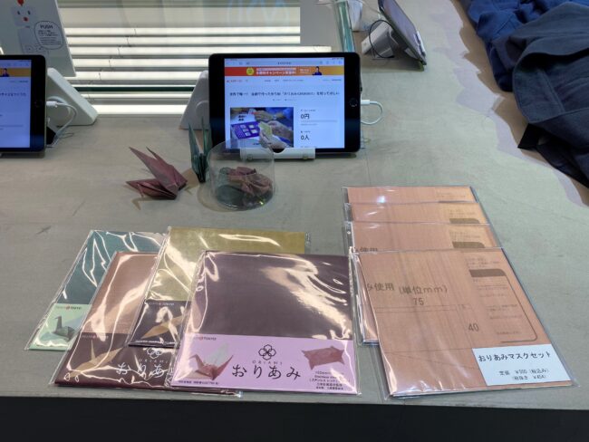 応援してくださった方には、おりあみや簡単に折れる折り図入りの「おりあみマスクキット」、「おりあみの折り鶴」などをご提供しています。