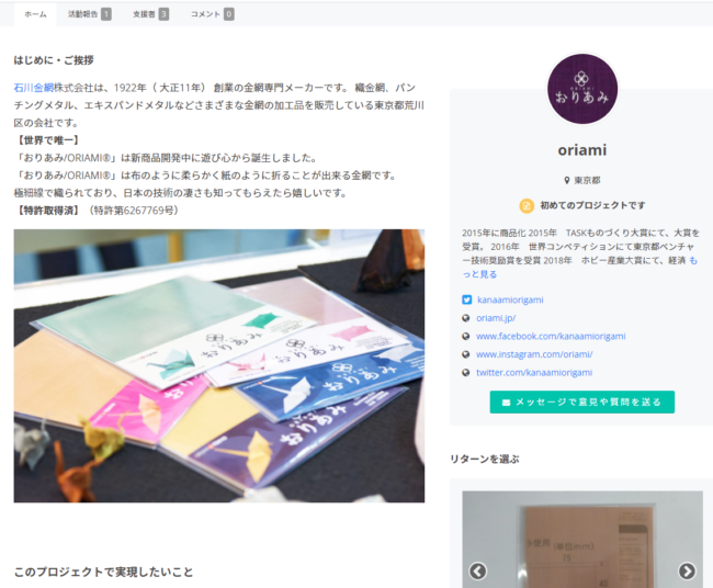 そこで、より多くの方におりあみを知ってもらうために、クラウドファンディング「CAMPFIRE」に参加することになりました。