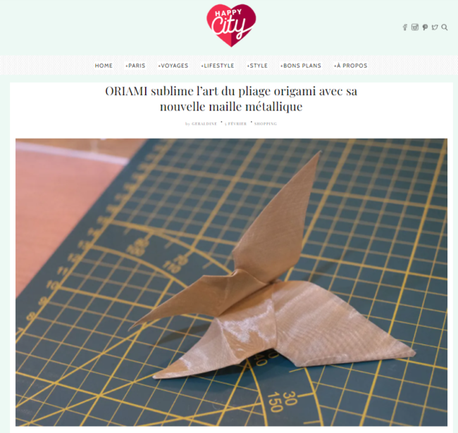 フランスのライフスタイルブログとして知られる「HAPPY CITY BLOG」で金網折り紙「おりあみ/ORIAMI®」が紹介されました。