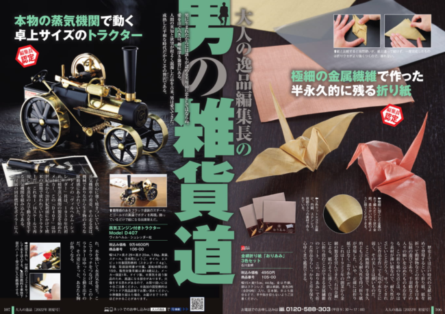 小学館の通販メディア「大人の逸品」2022年初夏号に金網折り紙「おりあみ/ORIAMI®」が掲載されました。