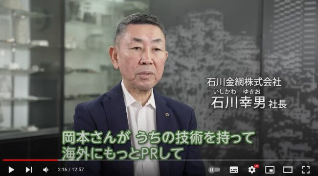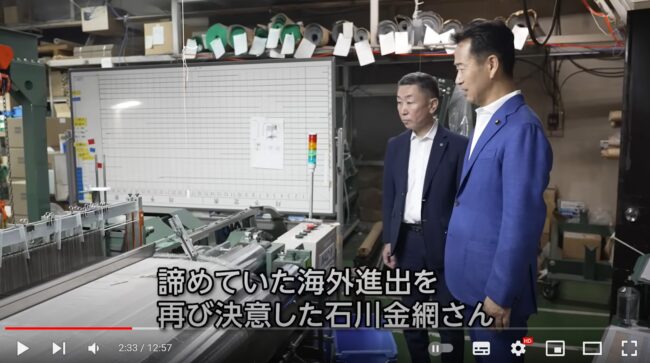 配信では議員が石川金網の工場を訪れる様子が撮影されており、石川社長もコメントしています。