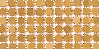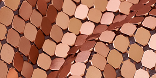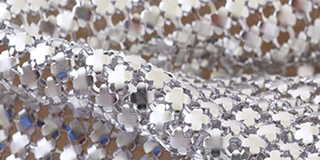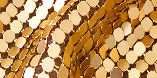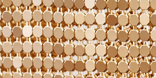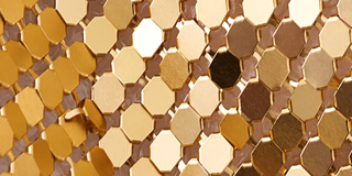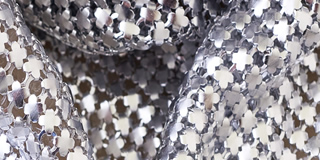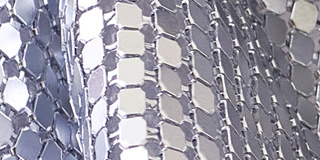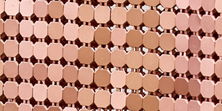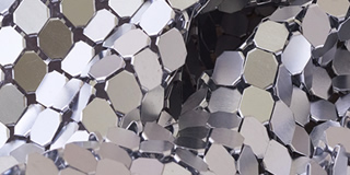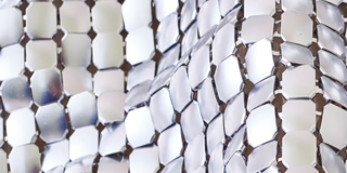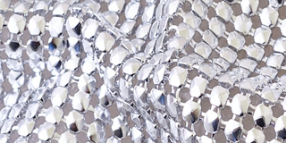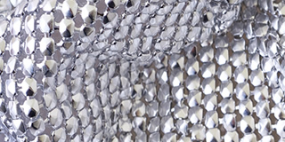 アルミ金網は、柔軟なアルミ薄板とリングで構成された新しいタイプの装飾材料です。スパンコール(スパングル)のような質感で、インテリア・ディスプレイなどの建築、衣服・バッグなどのファッションなど、アイデア次第で多岐にわたる用途に使用いただけます。